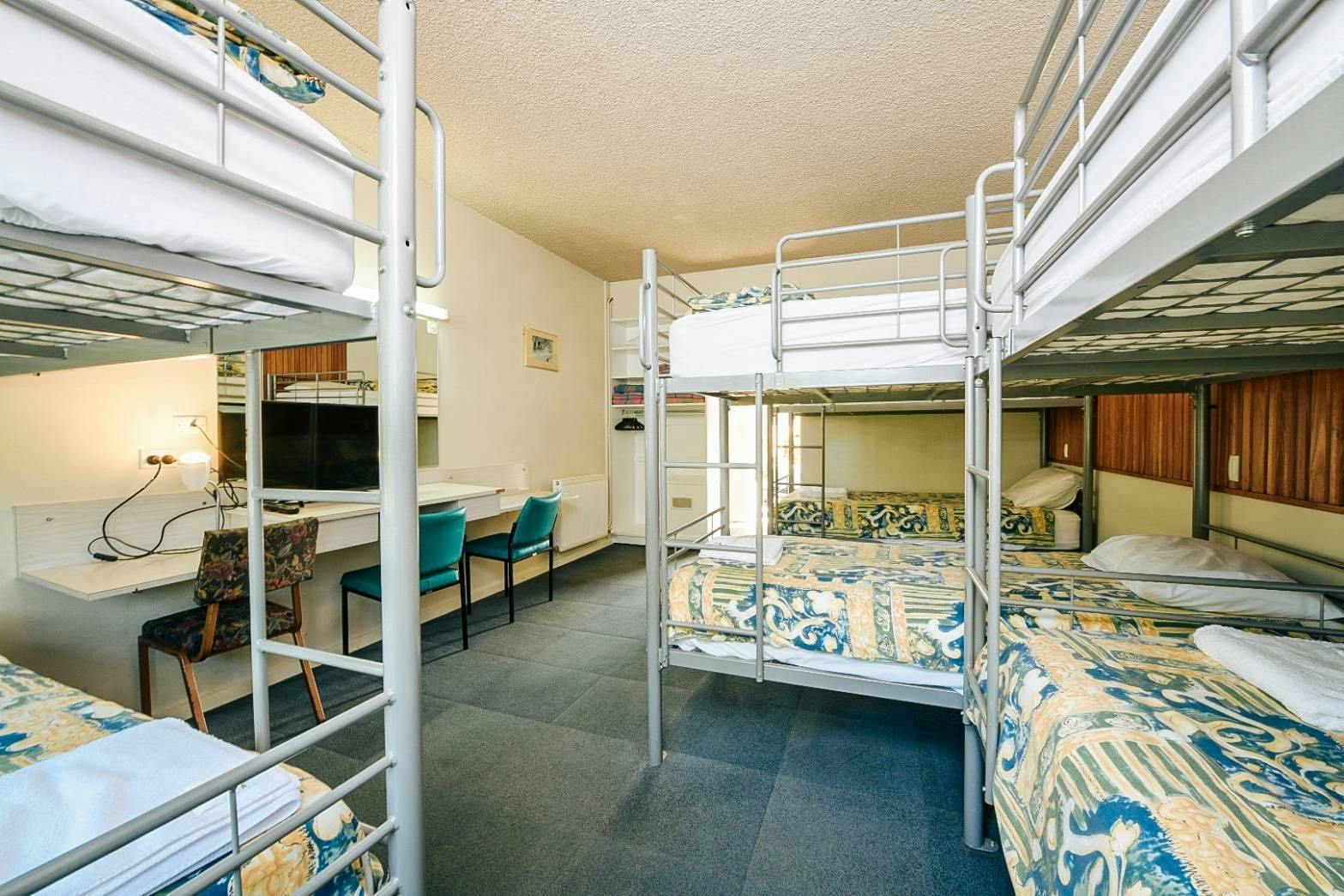 Bunk Room 8 Share has 4 sets of bunks to provide affordable accommodation for groups and families... and you still get to enjoy all the facilities of the motel. A great way to grab a bargain and have everything you need in a motel